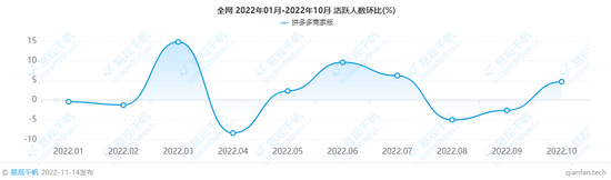 若從月度活躍人數(shù)環(huán)比的變化來看,年初至今,拼多多商家版App的環(huán)比增幅最高為15%,多數(shù)月份環(huán)比增幅低于5%,且多次出現(xiàn)月活環(huán)比下跌的情況。