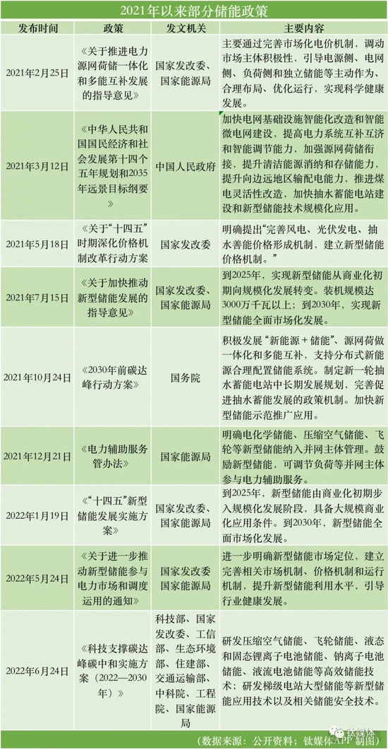 2021年以來,國家及地方儲能相關(guān)政策頻出,600余項政策涵蓋儲能發(fā)展各個方面。其中,《關(guān)于加快推動新型儲能發(fā)展的指導意見》明確目標:至2025年,國內(nèi)新型儲能(除抽水蓄能外的儲能系統(tǒng))裝機總規(guī)模達30GW以上。《2030年前碳達峰行動方案》則明確定位儲能是“雙碳”目標的關(guān)鍵支撐技術(shù)。