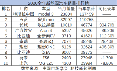 2020年,隨著特斯拉上海工廠投產出貨,2月特斯拉中國交付了3900輛model 3,當年銷量超13萬輛,位列新能源交付榜第一位。這點燃了國內C端市場對新能源汽車的需求。消費者通過中高端新能源車型表現出來的質量和產品力,轉而開始認同電動車產品。