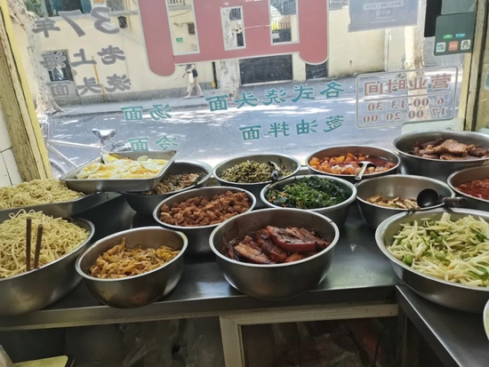 “一碗勁道的細面,看得見香味的各種澆頭任點任選,熱氣騰騰的湯水裊裊飄著煙。”朔亦表示,她很喜歡這樣的氣氛,“客人進店,可以隨便吃點,總有一樣能填飽肚子。”直到晚上9點多關店,老主顧們都能把店坐得滿滿當當,“有時當天備得菜少了,還要臨時再去外面買菜補上。”