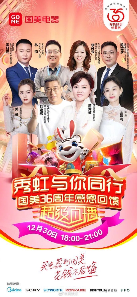 12月30日,國美電器董事長黃秀虹首次走進直播間,親自露面直播帶貨,其入局直播帶貨的決心可見一斑。